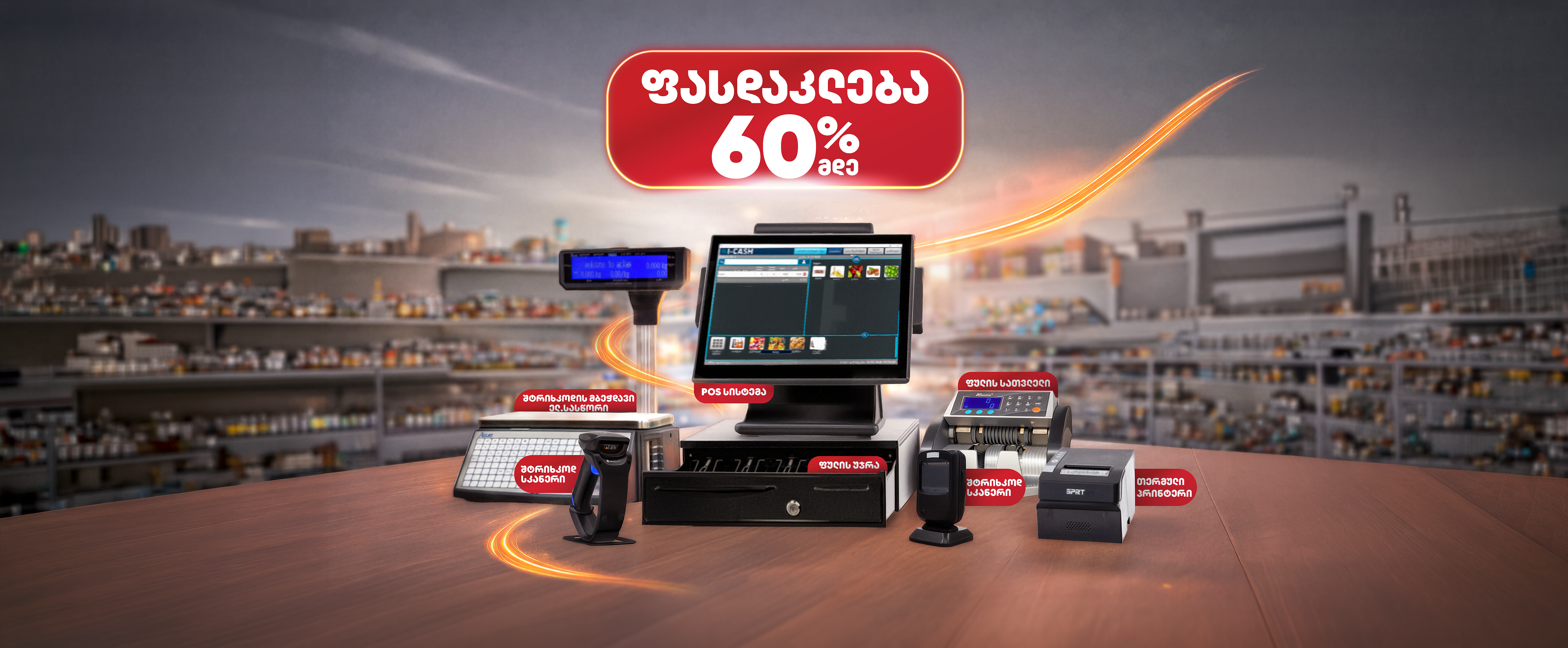 თქვენი ბიზნესის სრული კომფორტისთვის, პროდუქტს საჩუქრად მოყვება ფულის უჯრა Comfort, iCash POS პროგრამა ერთი თვის განმავლობაში უფასოდ და უფასო მობილური ინტერნეტი.